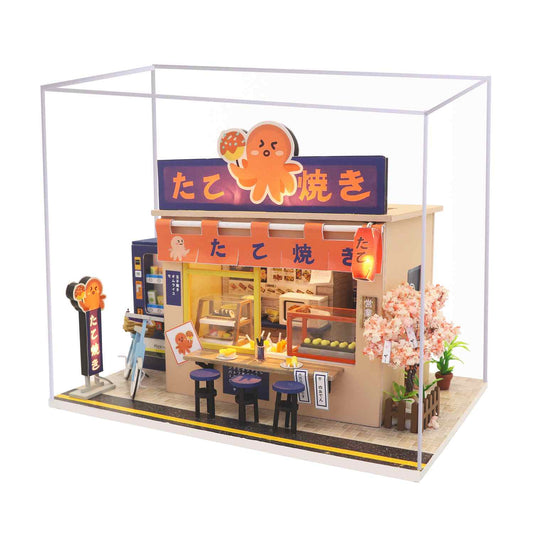 DIY M913 ’Star Takoyaki‘ Wooden Miniature Dollhouse w/LED Lights and Dust Proof Cover and Glue Assemble Dollhouse