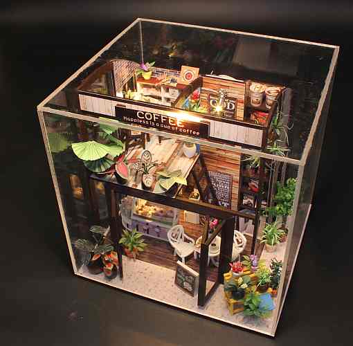 DIY Miniature Doll House "Coffee Time" Shop (C006) w/LEDs Dust-proof Cover and Glue Present for Boys and Girls Wooden Crafts