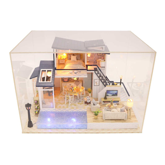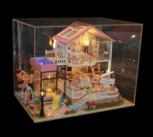 DIY M031 ’Cynthia's Holiday‘ Wooden Miniature Dollhouse w/ LED Lights and Dust Proof Cover Assemble Dollhouse