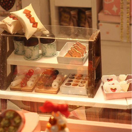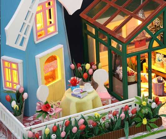 DIY 'Sweet Time‘ (M2001) Wooden Miniature Dollhouse w/ LEDs, Dust Proof Cover and Glues