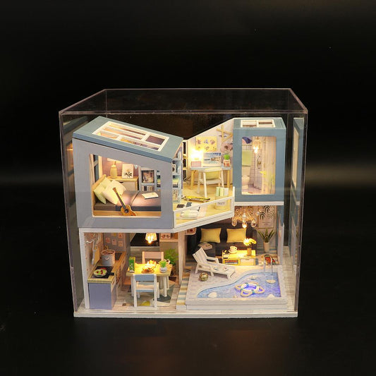 Dollhouse Furniture Kits (L906) 'Romantic Aegean Sea‘ w/Dust Cover and Glues Handmade Gifts Birthday Presents