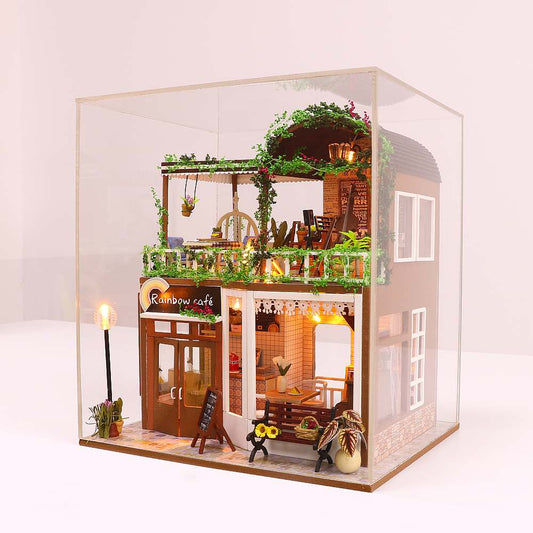 DIY M906 'Rainbow Café' Wooden Miniature Dollhouse w/ LEDs, Dust Proof Cover and Glues