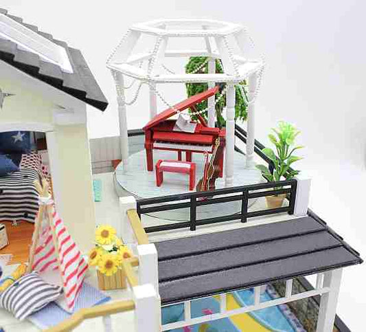 Dollhouse 13834 "Musical Summer" w/ Dust Proof Cover, Glues and LED Lights, Wooden Miniature Dollhouse Anniversary Gifts Birthday Presents
