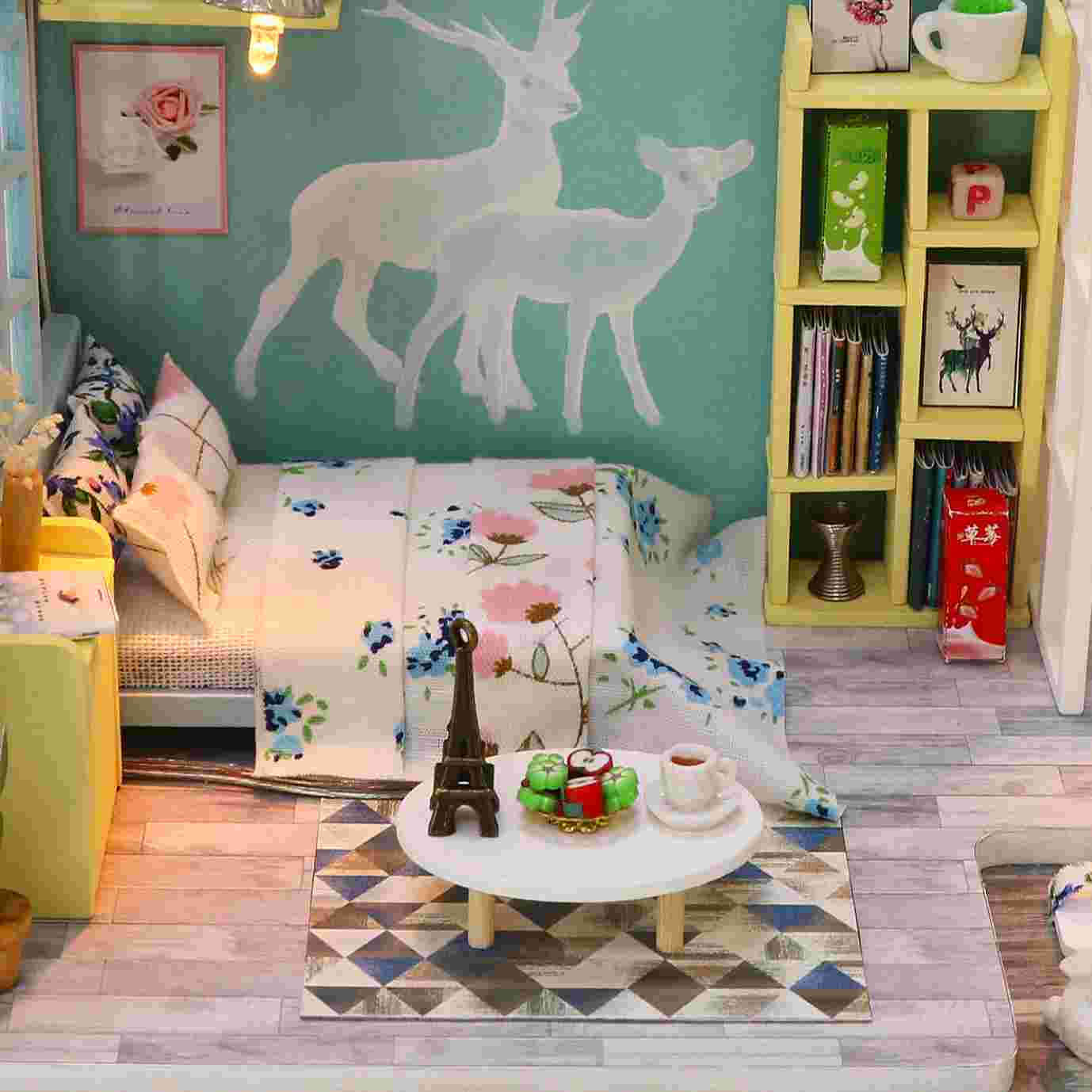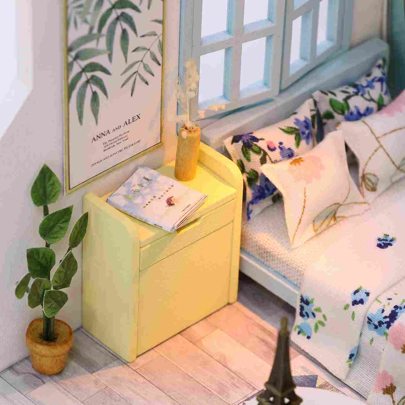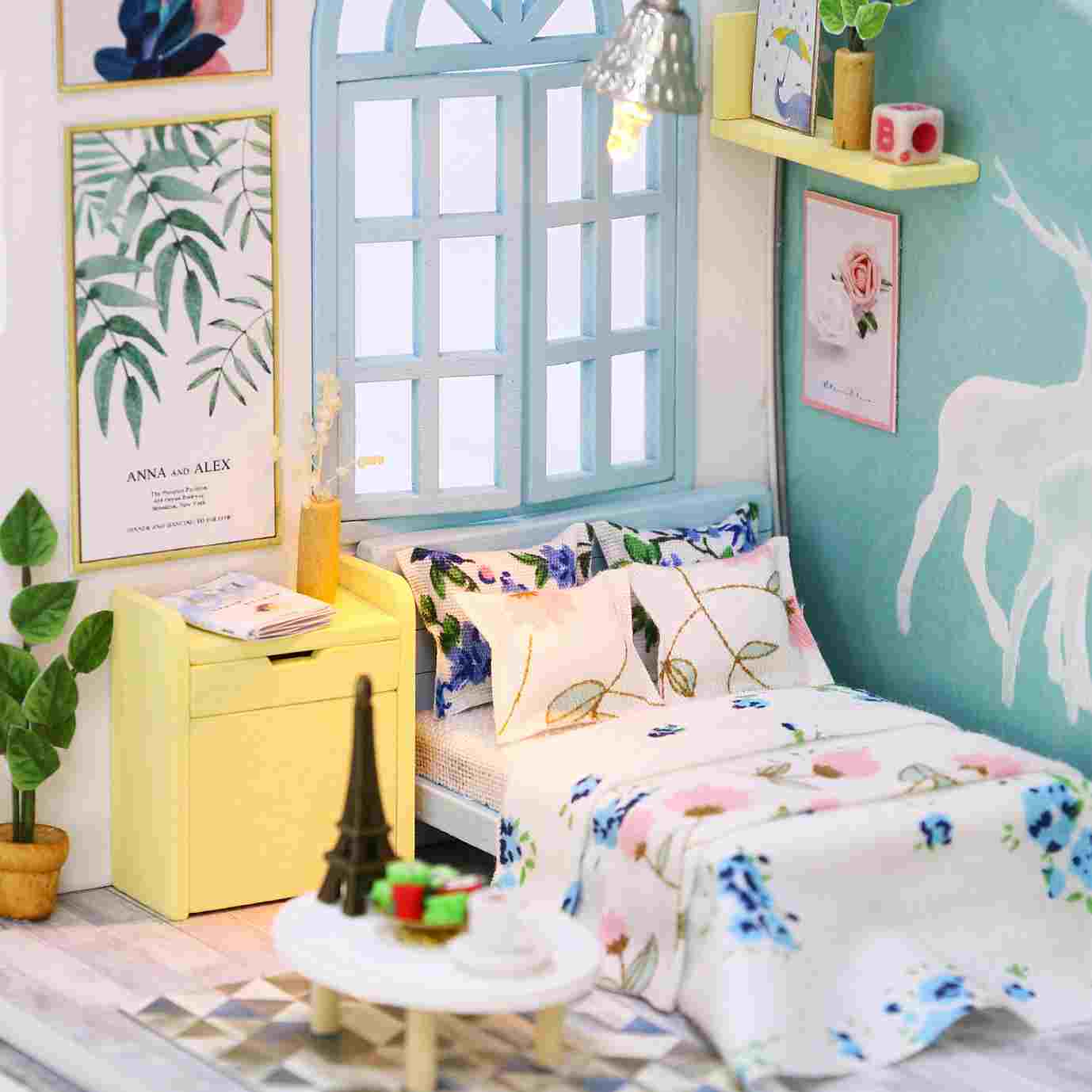 Assemble Wooden Kids Toy Miniature Dollhouse 'Family Nap' w/ LEDs and Dust Proof Cover and Glue Birthday Present