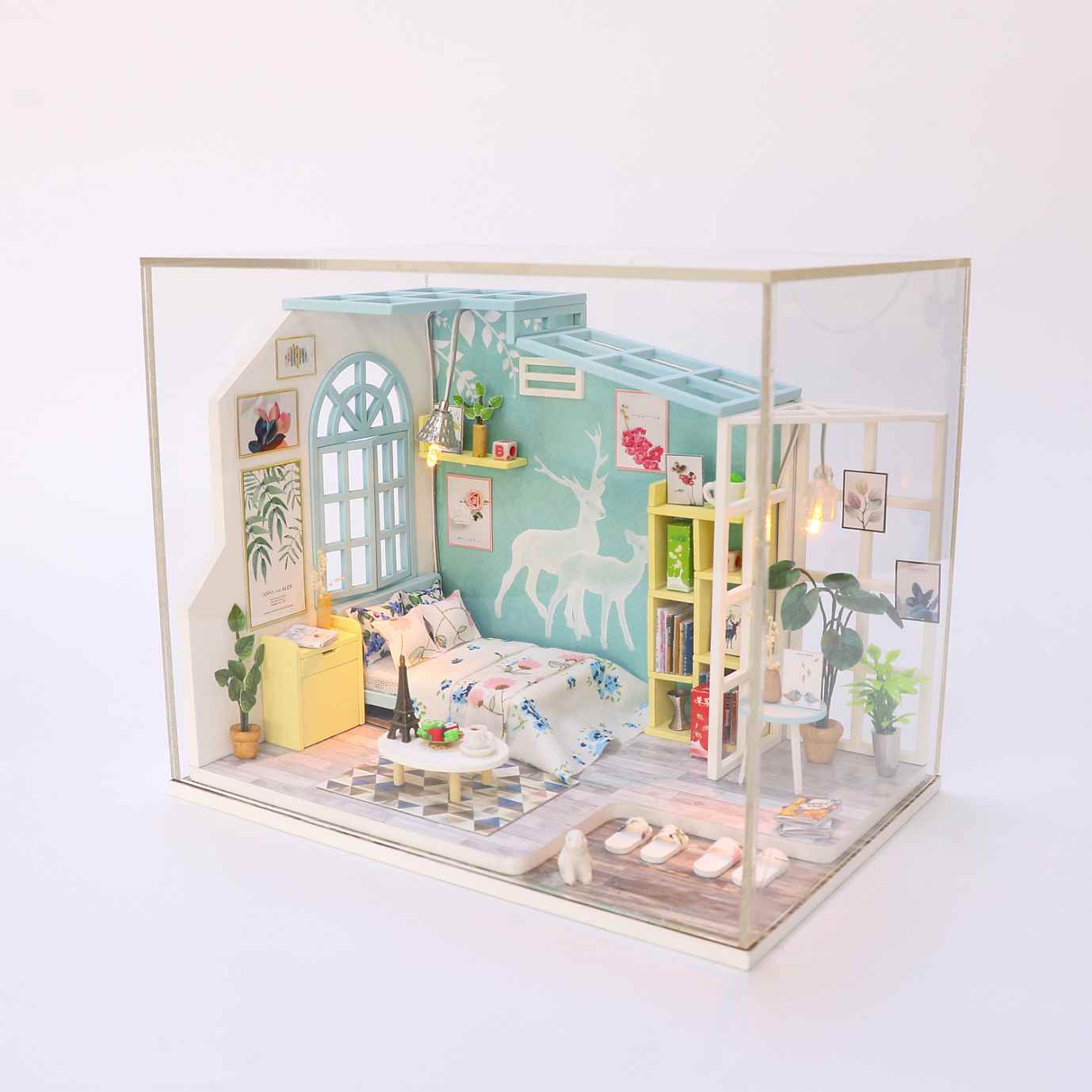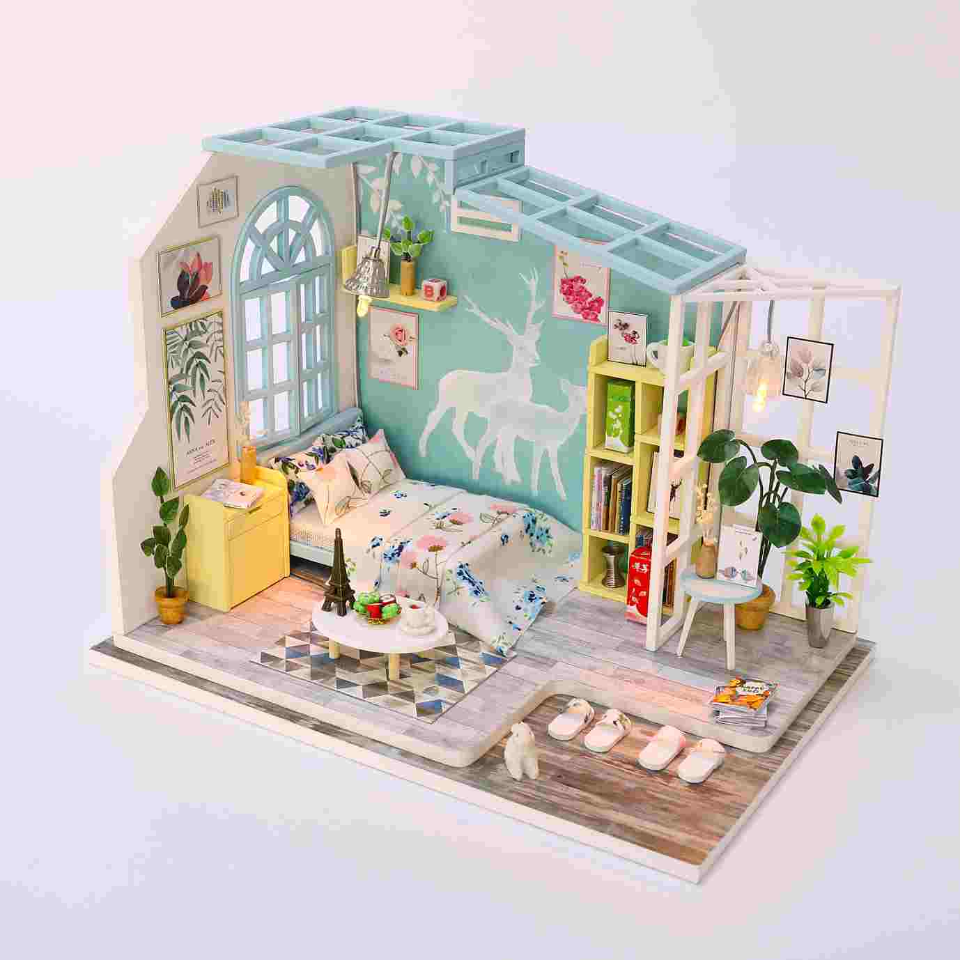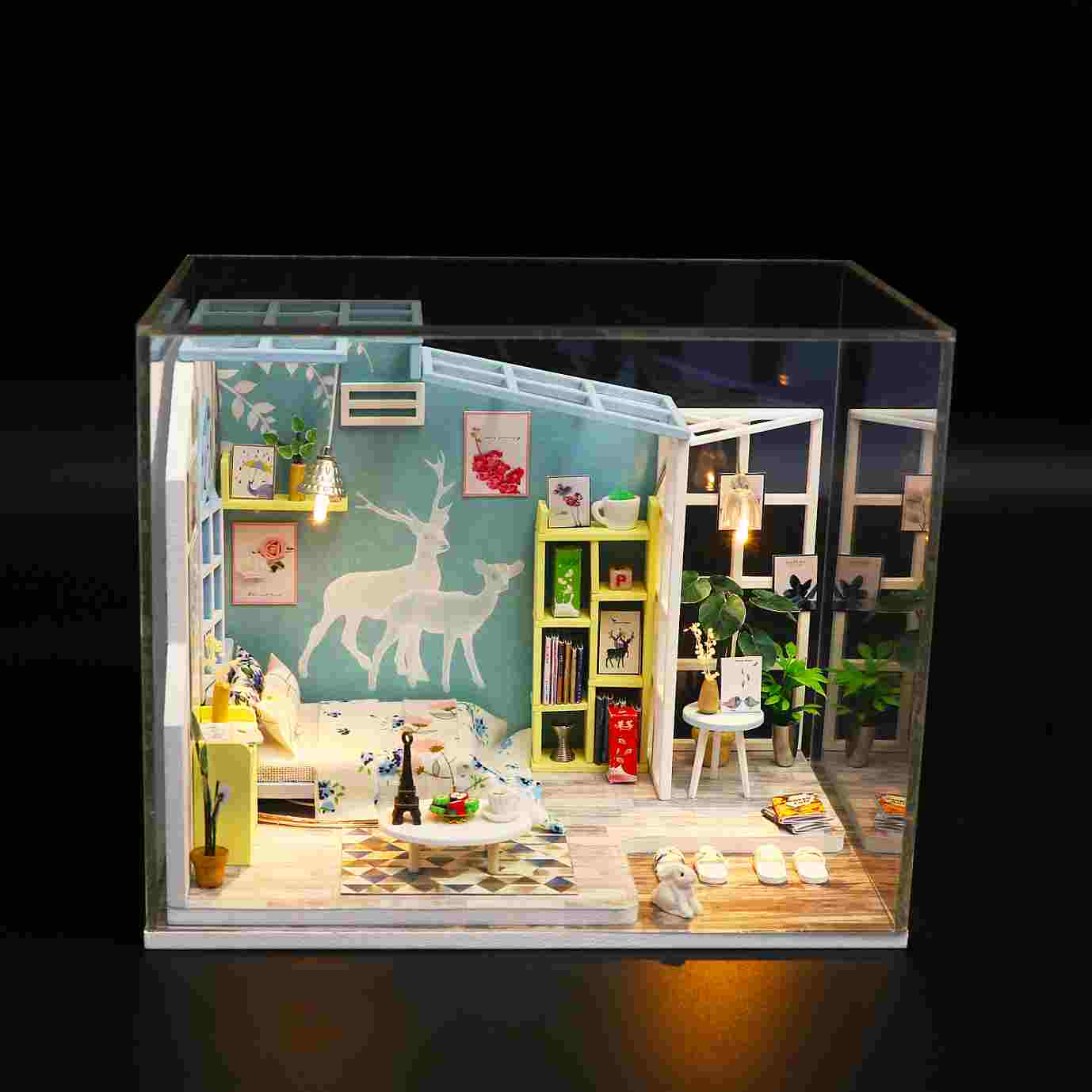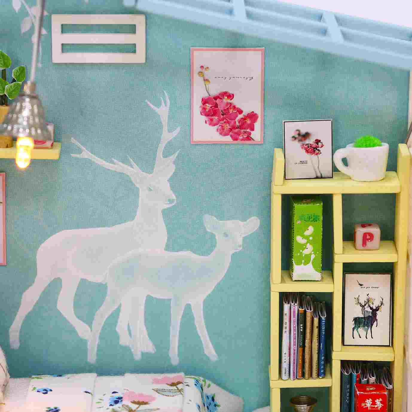 Assemble Wooden Kids Toy Miniature Dollhouse 'Family Nap' w/ LEDs and Dust Proof Cover and Glue Birthday Present