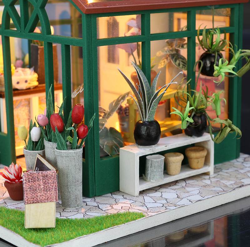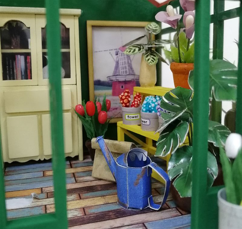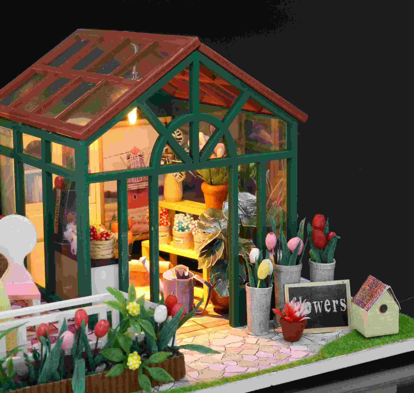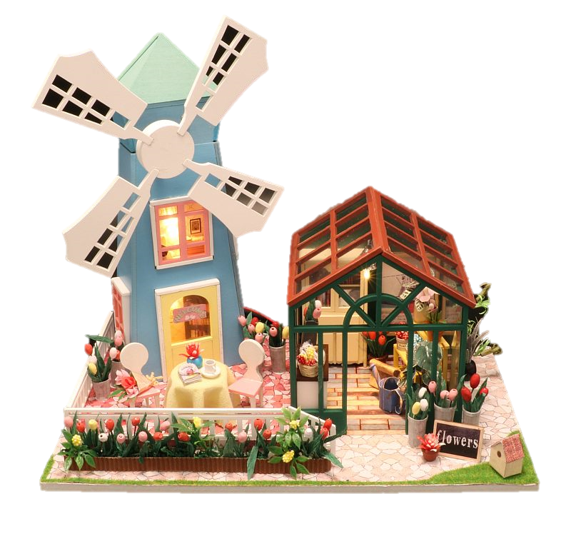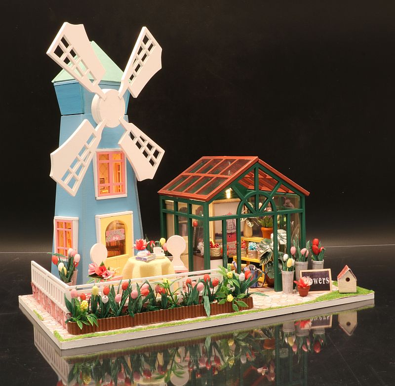 DIY M036 ’Amsterdam Windmill Flower House‘ Wooden Miniature Dollhouse w/ LED Lights, Music Movement and Glues