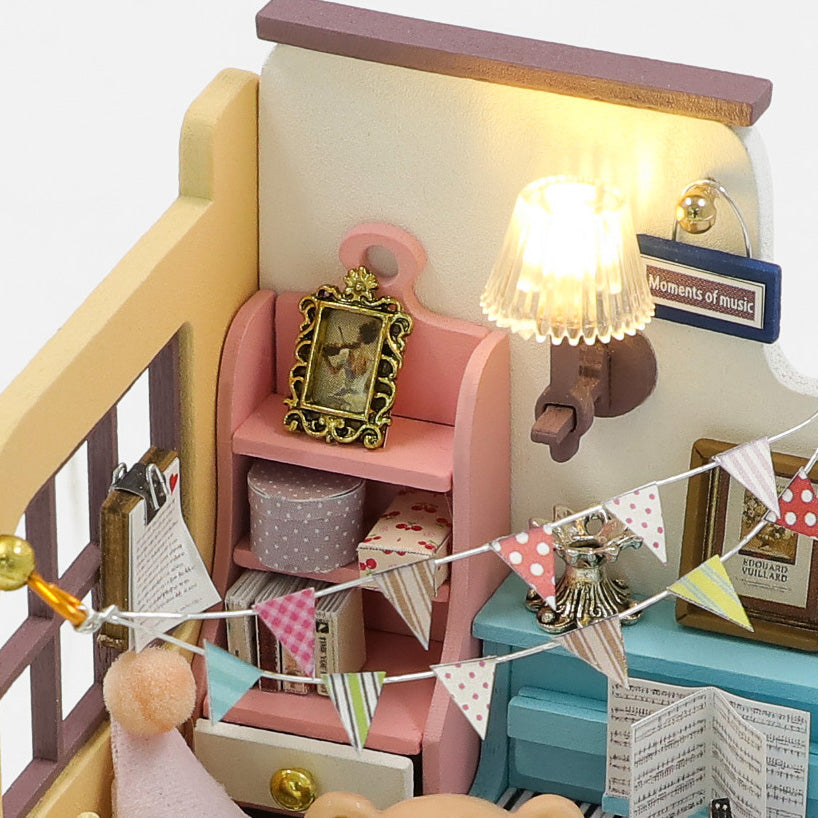 DIY "Moments of Music" S2303 Dollhouse Furniture Wooden Miniature Dollhouse w/ LEDs and Dust Proof Cover Toy Kits Fun Crafts