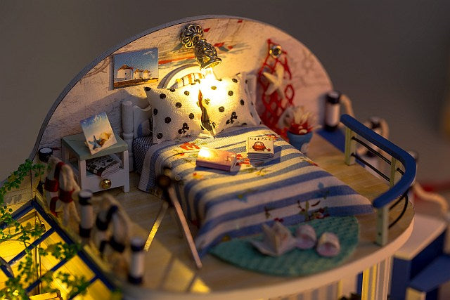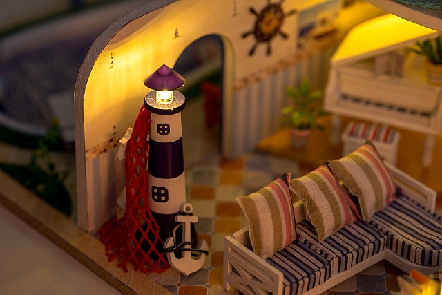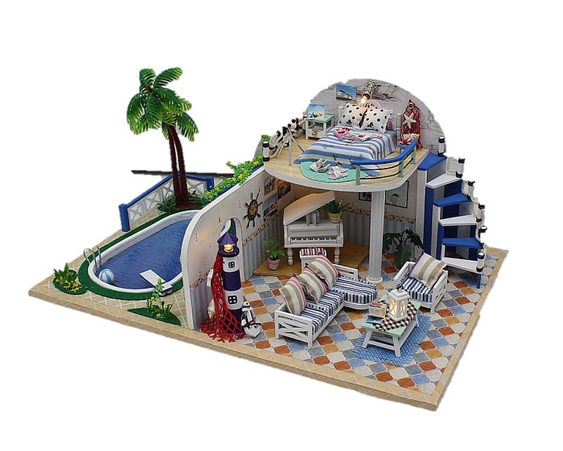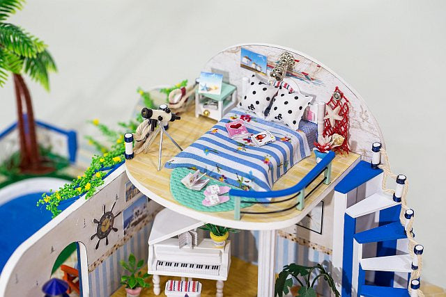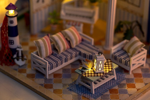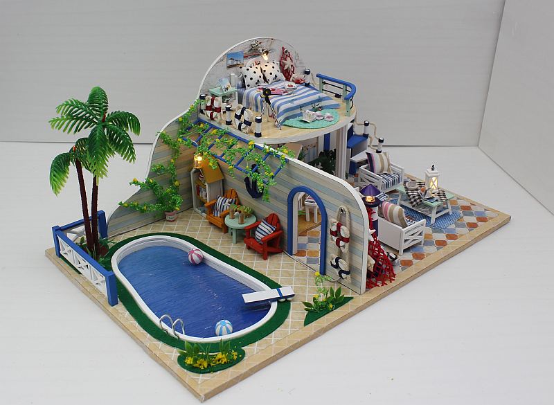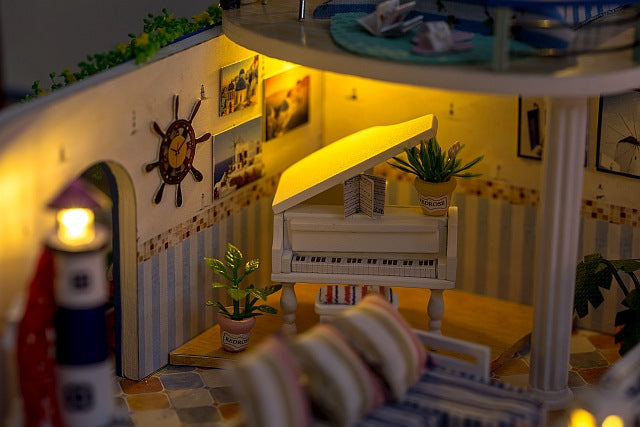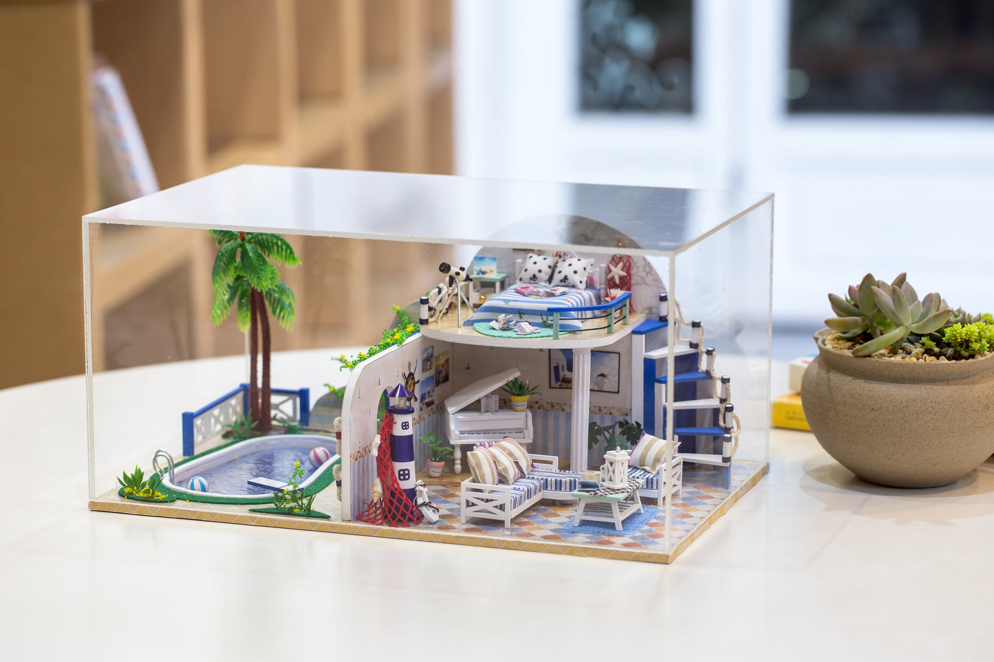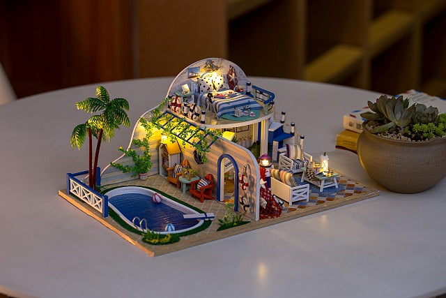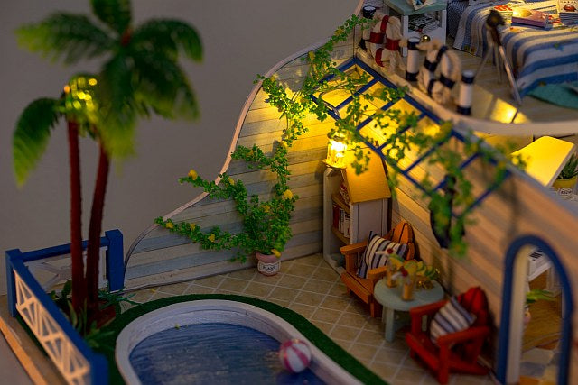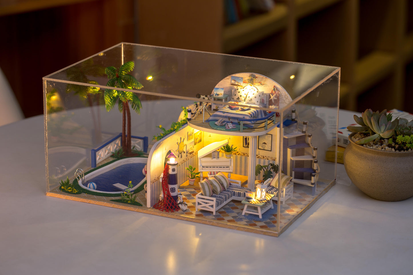 Wooden Crafts Furniture Kits ’Clear Summer Villas‘ Wooden Miniature Dollhouse w/Dust Cover, Music Movement and Glues Dollhouse Fun Handmade Crafts