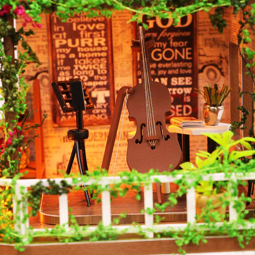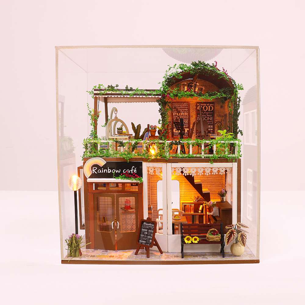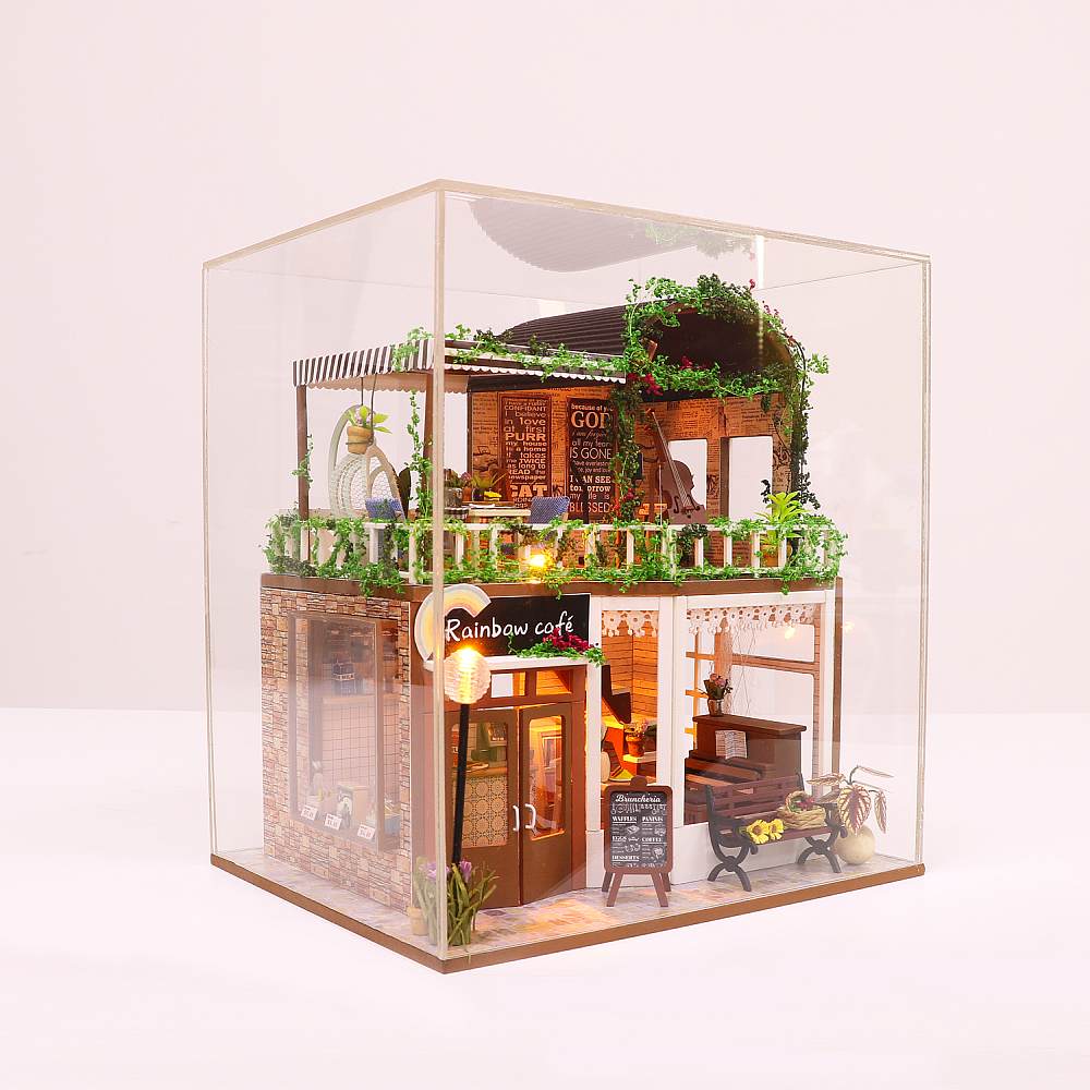 DIY M906 'Rainbow Café' Wooden Miniature Dollhouse w/ LEDs, Dust Proof Cover and Glues