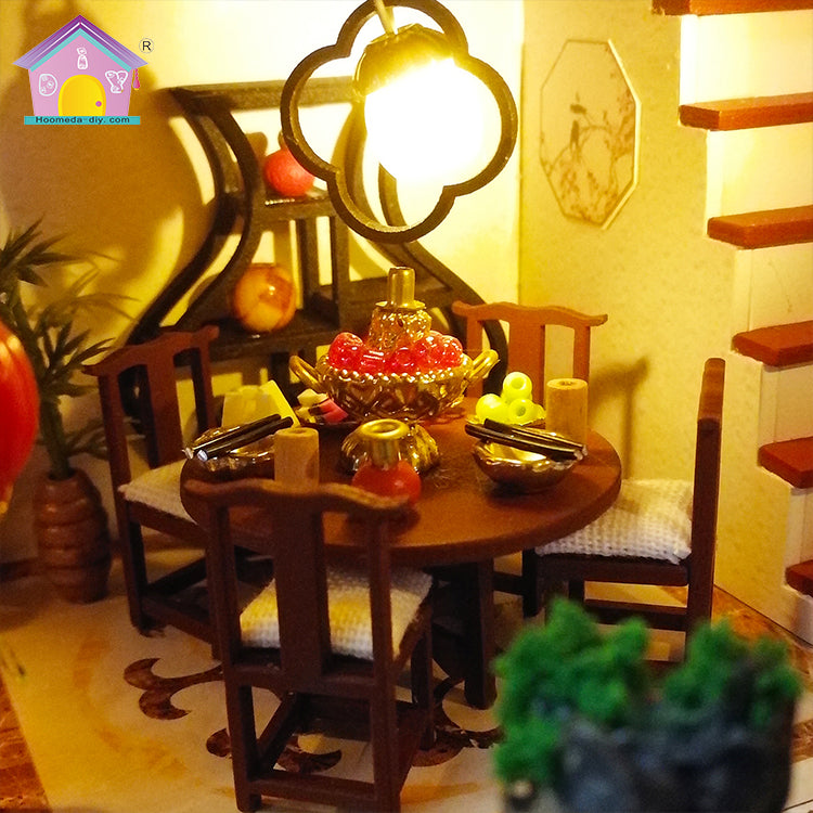 Wooden Dollhouse Furniture Kits "A Splendid Family "(L905) w/LED Lights, Dust Cover and Glues Handmade Gifts Birthday Presents