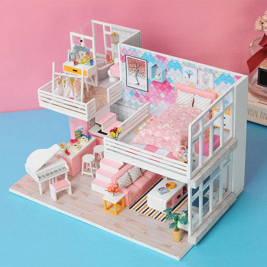 DIY Wooden Miniature Dollhouse 'Sweet Time‘ (M2001) w/ LEDs, Dust Proof Cover and Glues