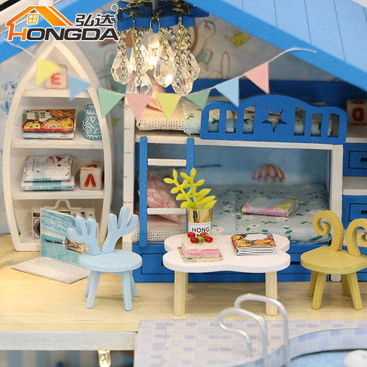 Hongda Dollhouse Furniture Kits (L906) 'Romantic Aegean Sea‘ w/Dust Cover and Glues Handmade Gifts Birthday Presents