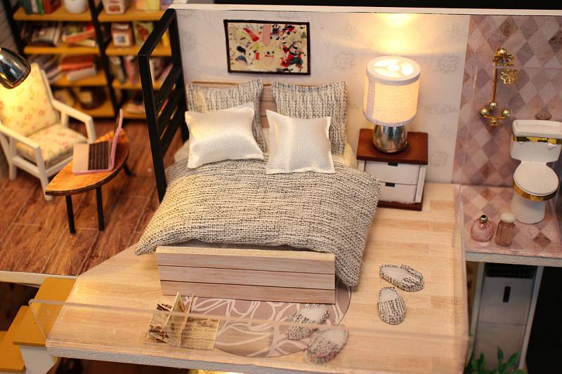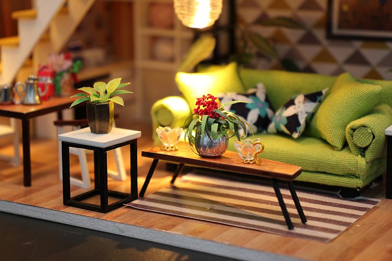 The model with room furniture, LED lights, and various daily supplies. It is a very lifelike and beautiful structure.