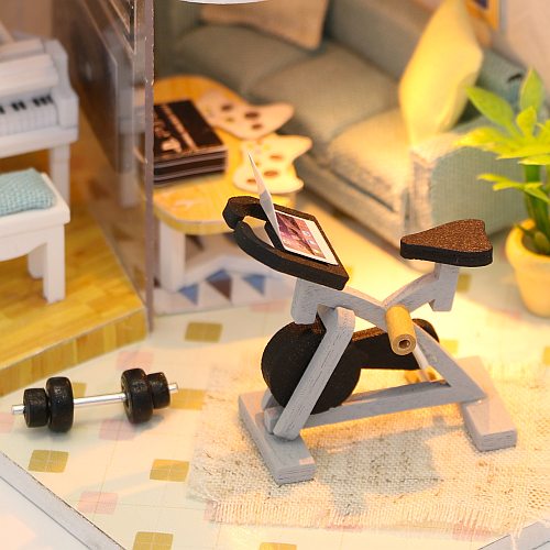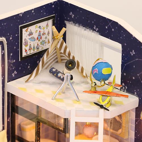 Assemble 'Shining Star‘ w/ LEDs, Dust Proof Cover and Glue Wooden Miniature Dollhouse Furniture Kits Gifts for Friend