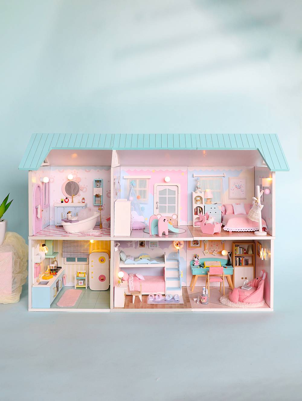 DIY Six-in-One Combined Wooden Miniature Dollhouse w/ Glues and Roofs Birthday Gift