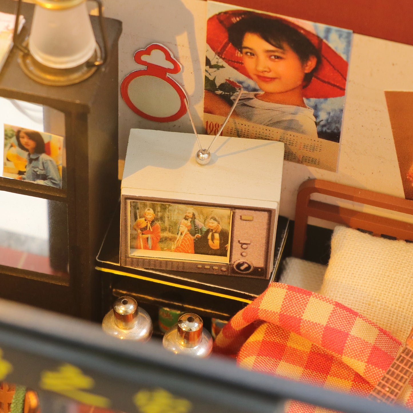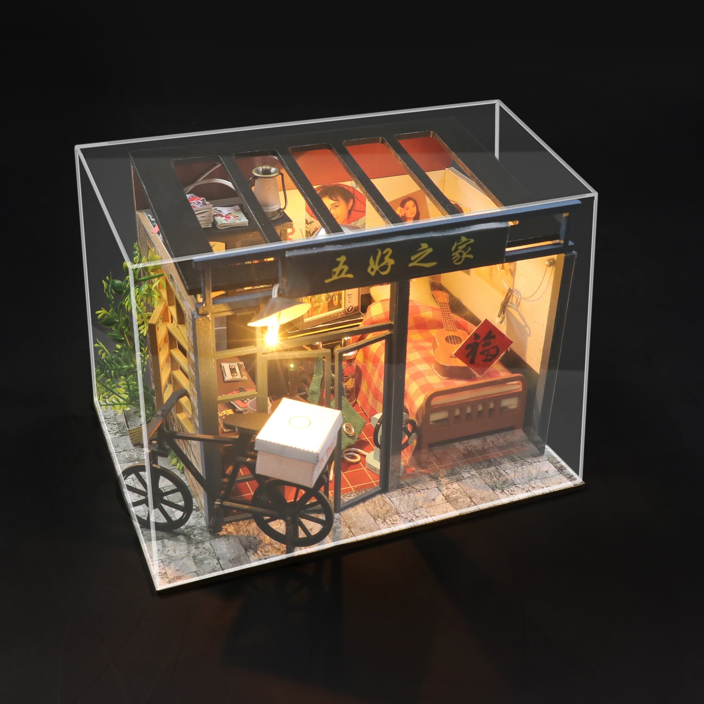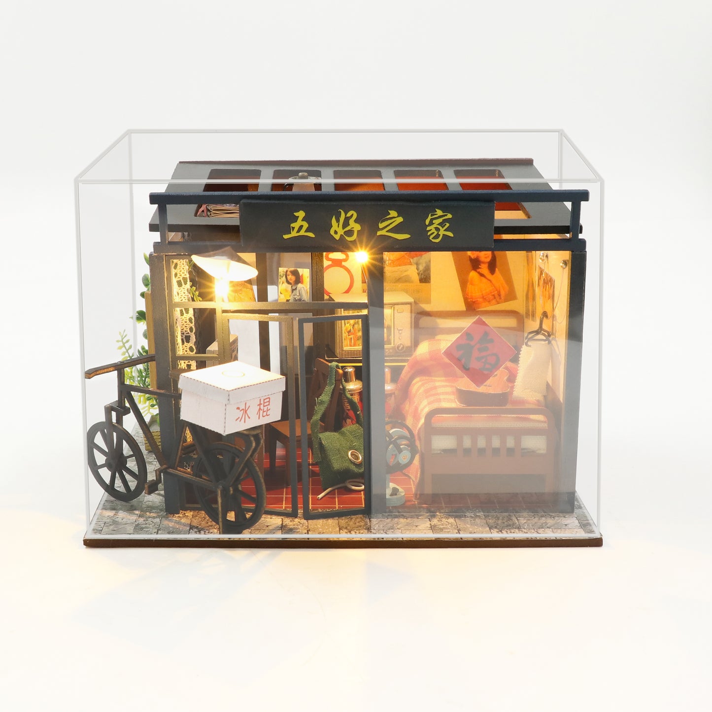 Hoomeda Wooden Miniature Dollhouse Furniture Kits ’We Are Family‘ S2221 w/Dust Proof Cover, LED Lights and Glues