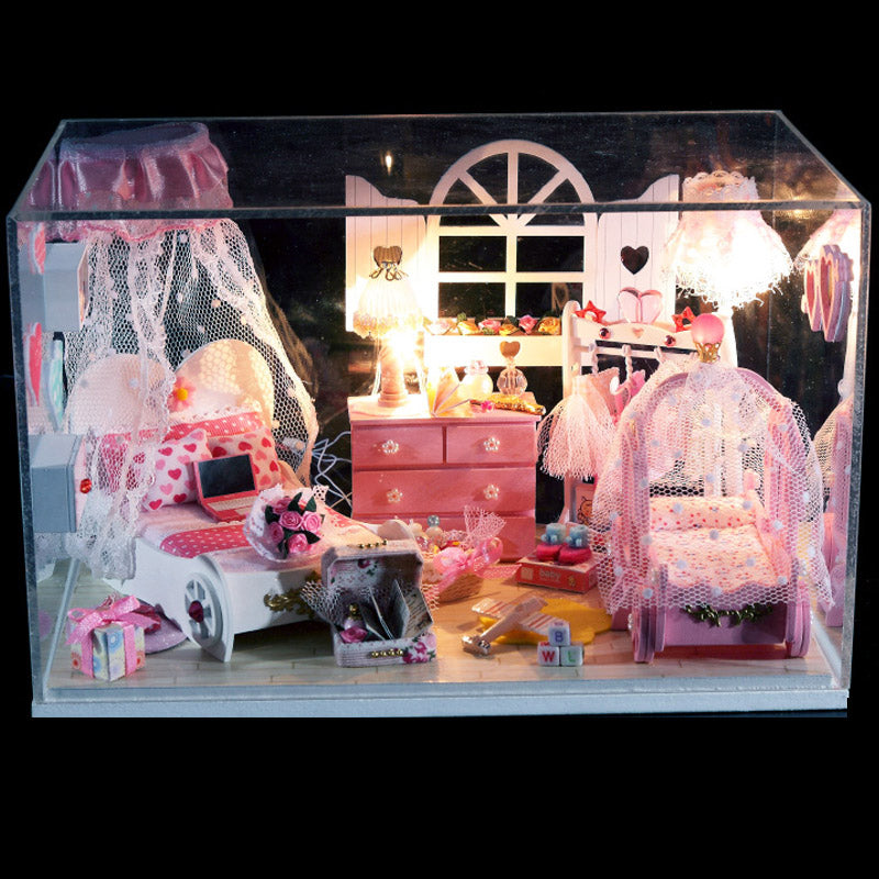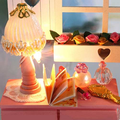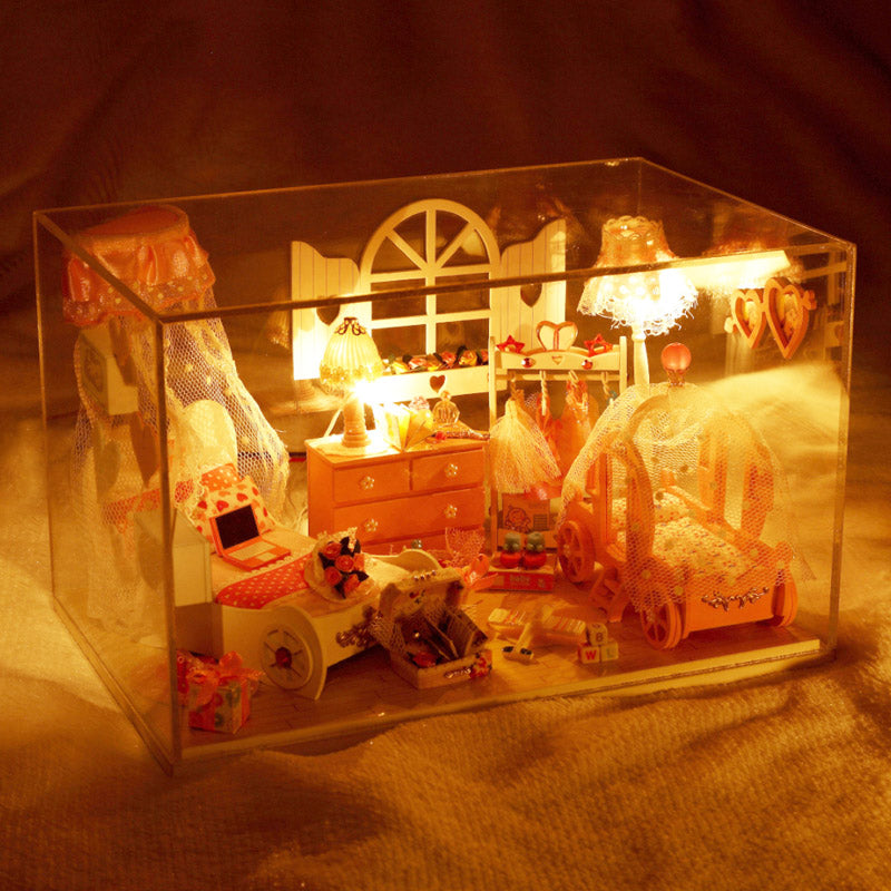 Intelligent Voice Control Assemble Wooden Kids Toy Miniature Dollhouse 'Pretty Princes Room' Dust-proof Cover, Music Motor and Glues Birthday Present